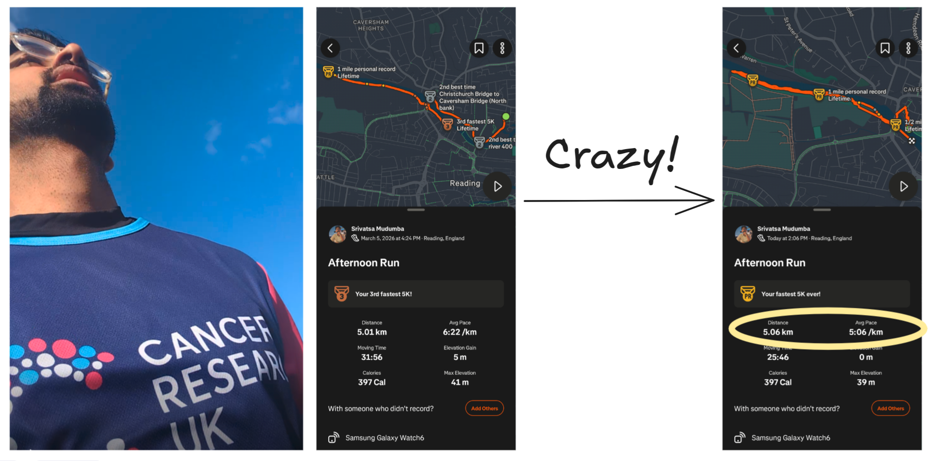Towards the end of February 2026, I was on instagram and came across an advertisement by Cancer Research UK asking people to take up a challenge for the month of March where we would have to run 5k for ten days over the month to spread awareness and if possible raise donations. Now I was not sure if I could raise donations for them but something told me I should take up this challenge. So I made a donation myself, they sent over a T-Shirt for me and I decided to use March as the month to improve my running and stamina. I play football once a week at work but I am no longer as fast or as active as I used be when I was 21. So time to change that!